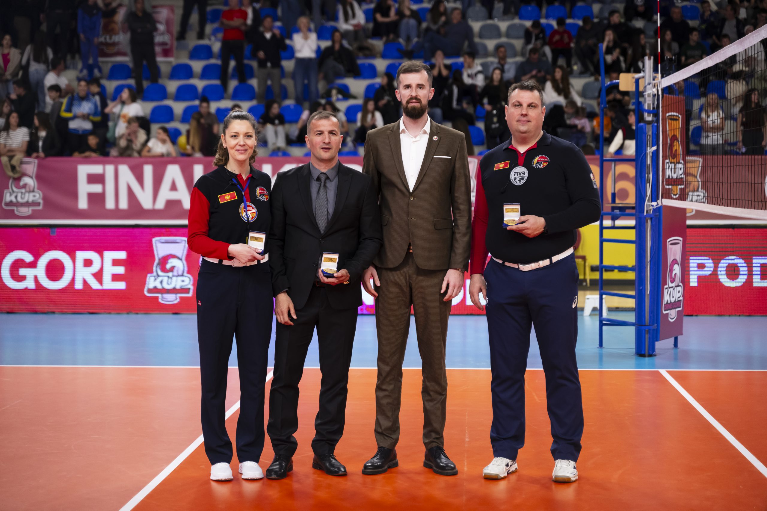 Priznanja službenim licima ženskog finala, sudijama Neveni Terzić i Slobodanu Kovačević, kao i supervizoru Saši Ivanoviću, dodijelio je direktor muških reprezentativnih selekcija u OSCG, Ivan Ječmenica.