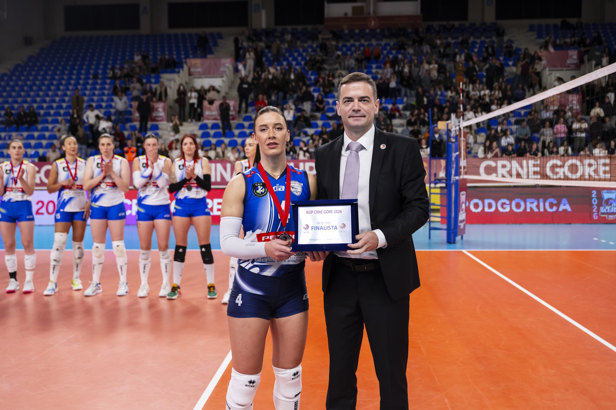 Pehar kapitenki podgoričko sastava Milevi Magdelinić uručio je predsjednik Odbojkaškog saveza Crne Gore Nikola Kažić.