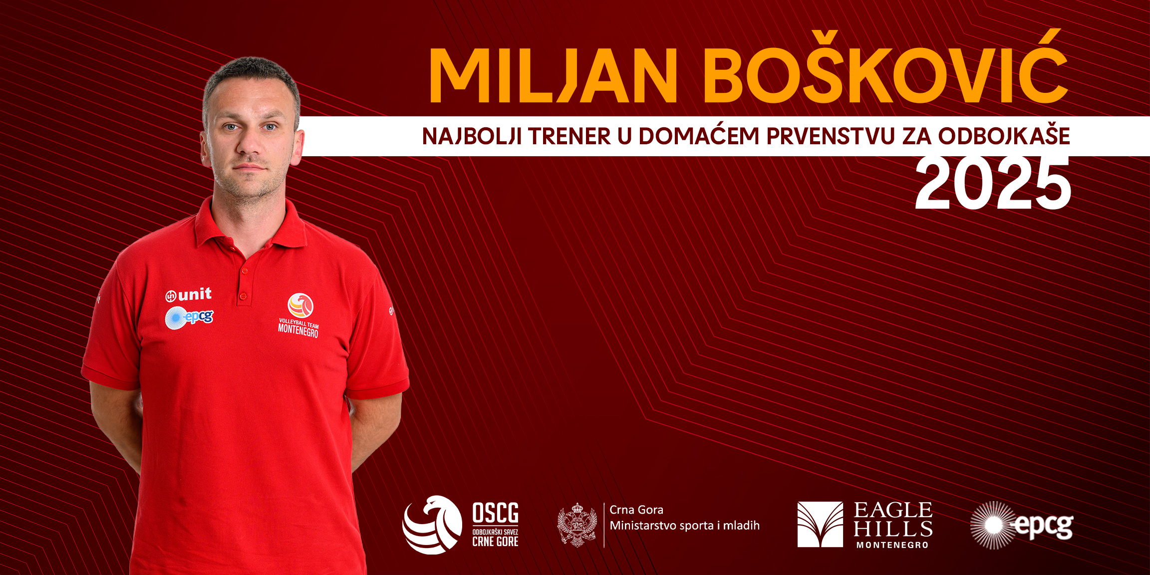 Za najboljeg trenera u Crnoj Gori u konkurenciji muških odbojkaških klubova, proglašen je Miljan Bošković, koji je u 2025. godini osvojio EPCG Superligu, Kup, kao i juniorsko i kadetsko prvenstvo Crne Gore kao trener Budve.